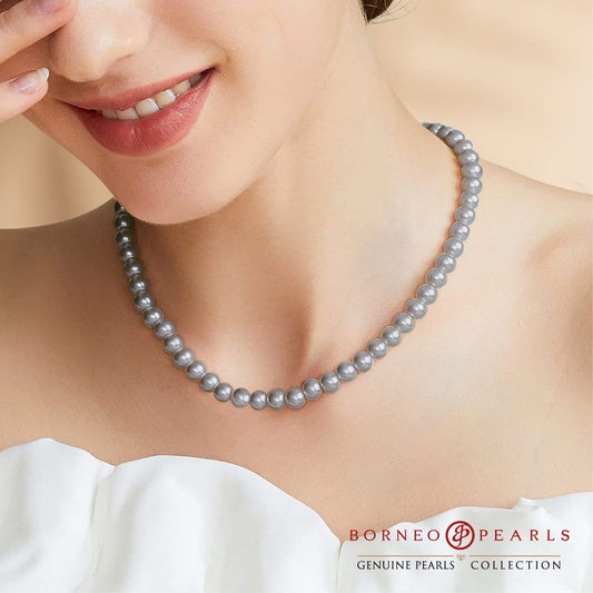 قلادة من اللؤلؤ الرمادي مقاس 9-10 ملم