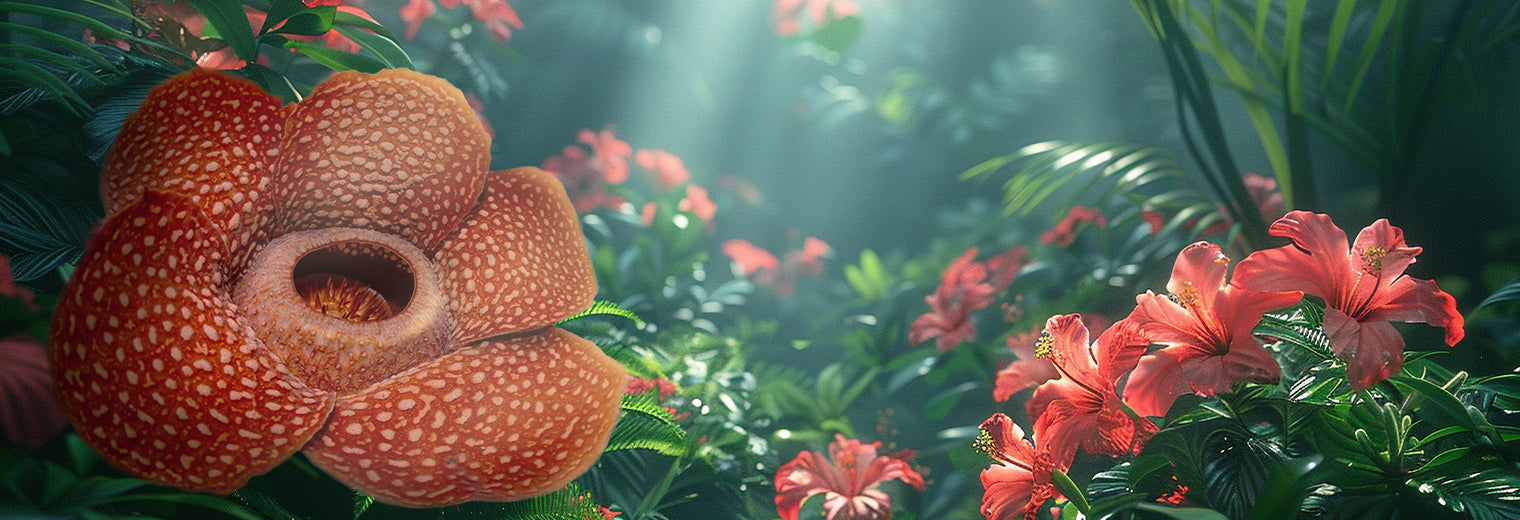 تعد جزيرة بورنيو الاستوائية هذه موطنًا لأكبر قدر من التنوع البيولوجي على هذا الكوكب، حيث تدعم أكثر من نصف أنواع النباتات العالمية. ومن أبرز هذه النباتات زهرة رافليسيا، وهي أكبر زهرة في العالم، بالإضافة إلى نباتات الإبريق الضخمة التي تهضم الحشرات.