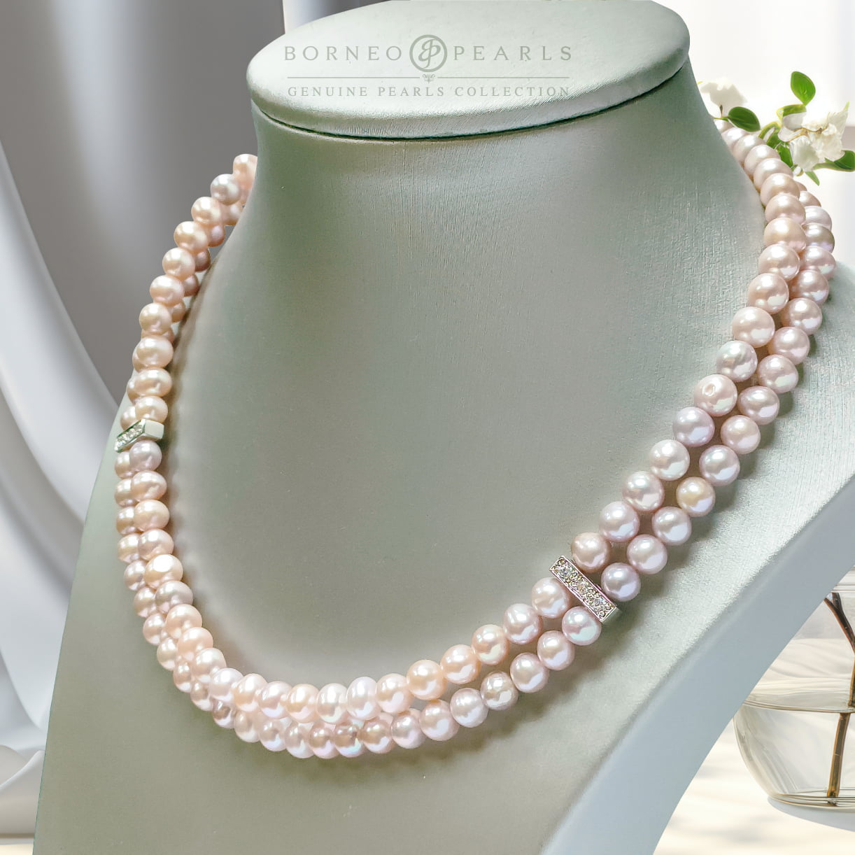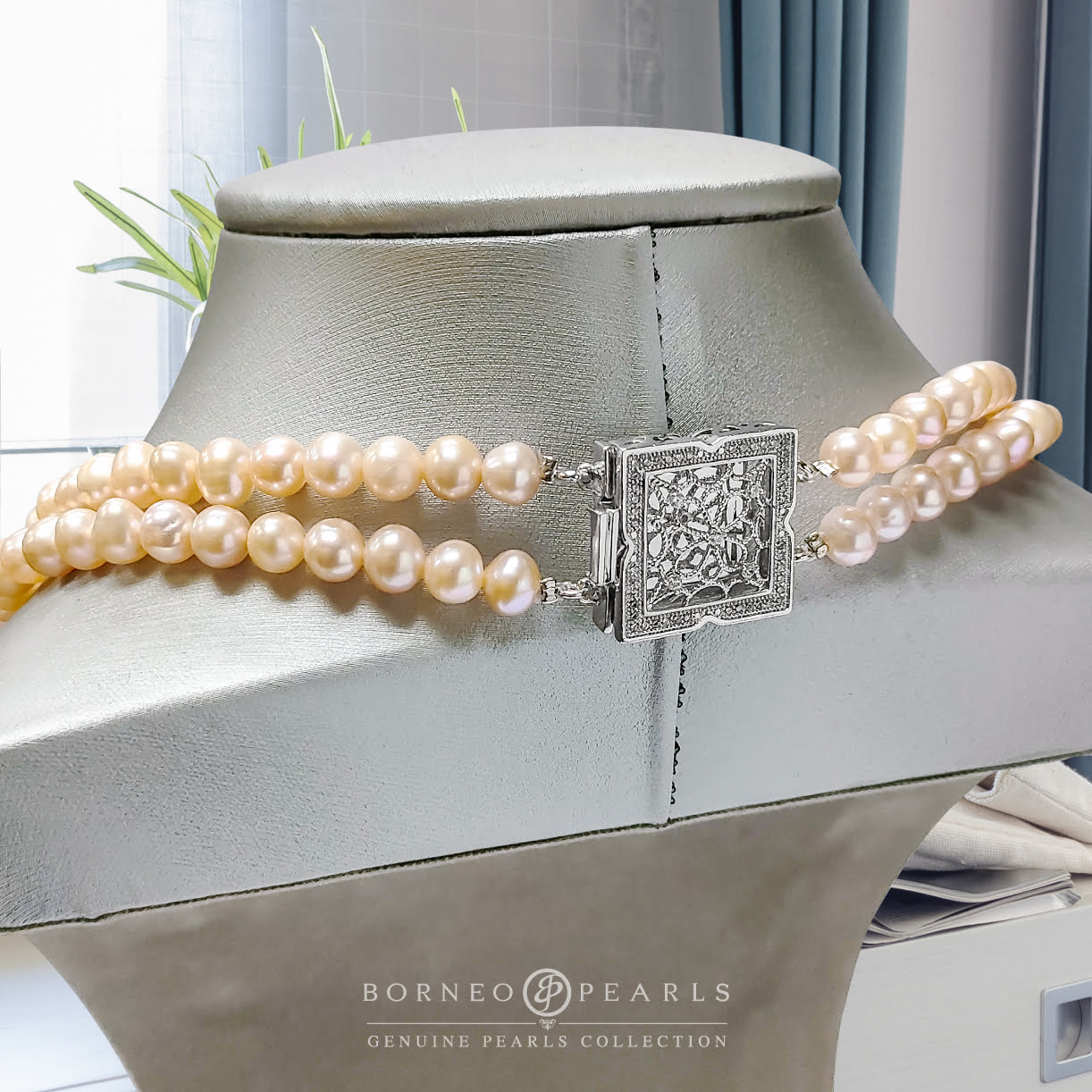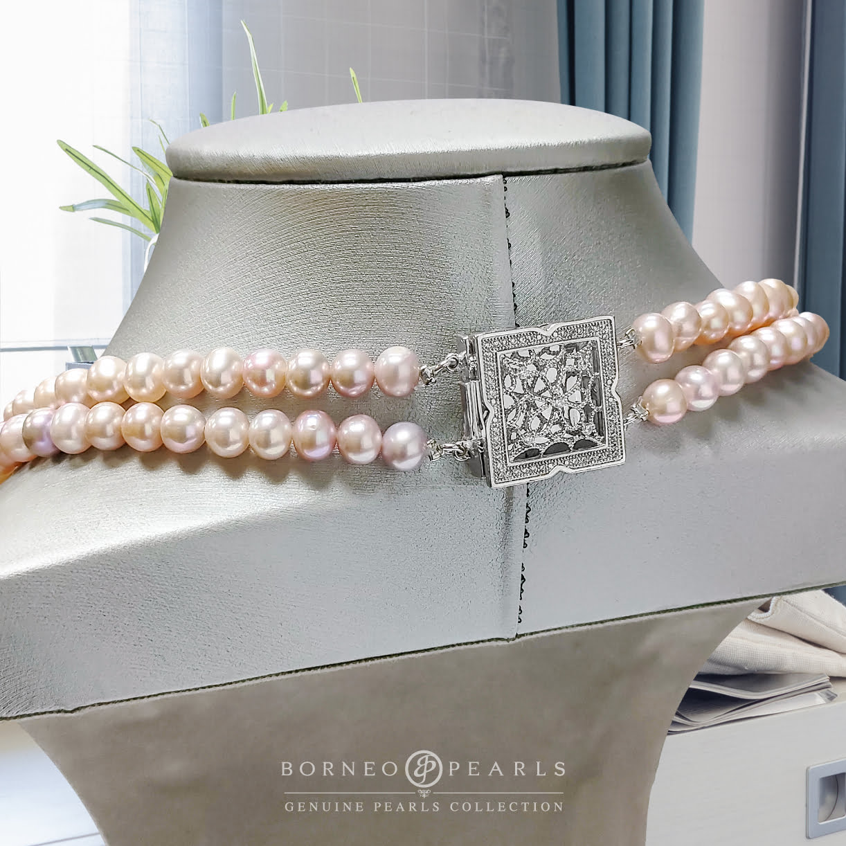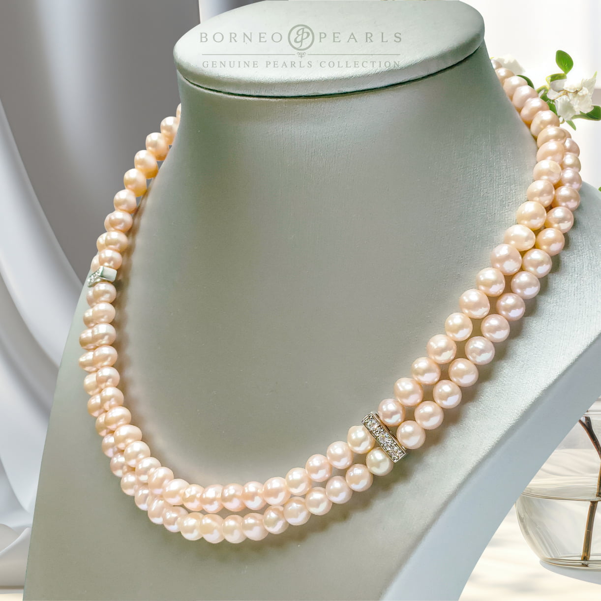 إن سحر العالم القديم المتمثل في عقد اللؤلؤ ذو الطبقة المزدوجة هو هدية لا تقاوم. تتميز هذه القلادات الرائعة المصنوعة من لؤلؤ المياه العذبة ذات الجديلة المزدوجة مقاس 6-7 مم بأرقى لآلئ المياه العذبة المتوفرة اليوم. لديهم بريق استثنائي وأسطح خالية من العيوب.