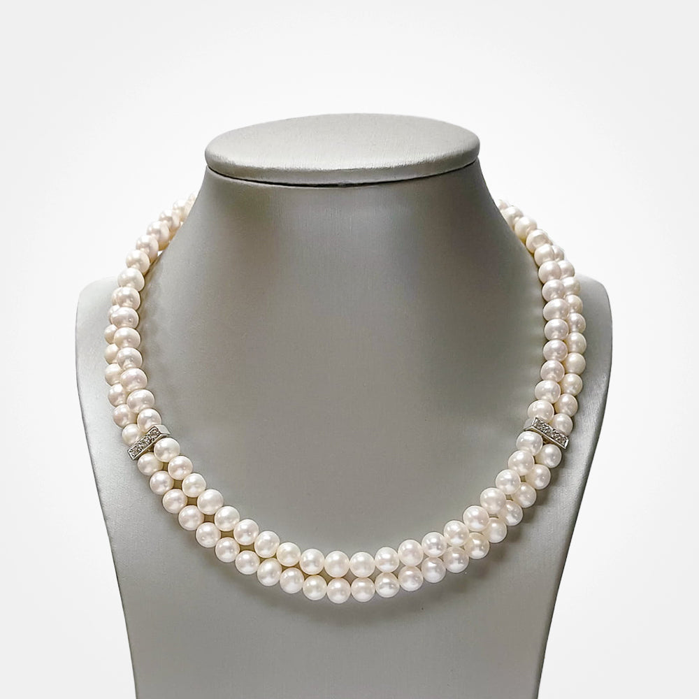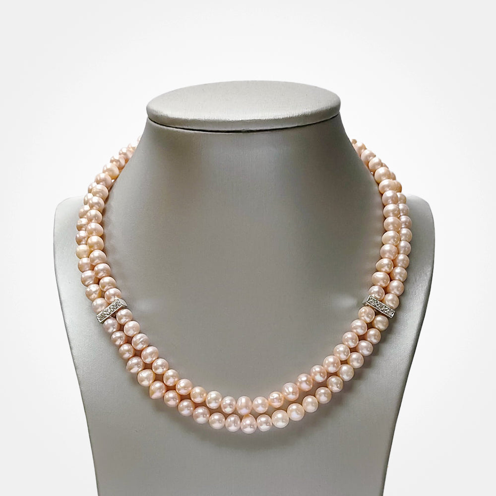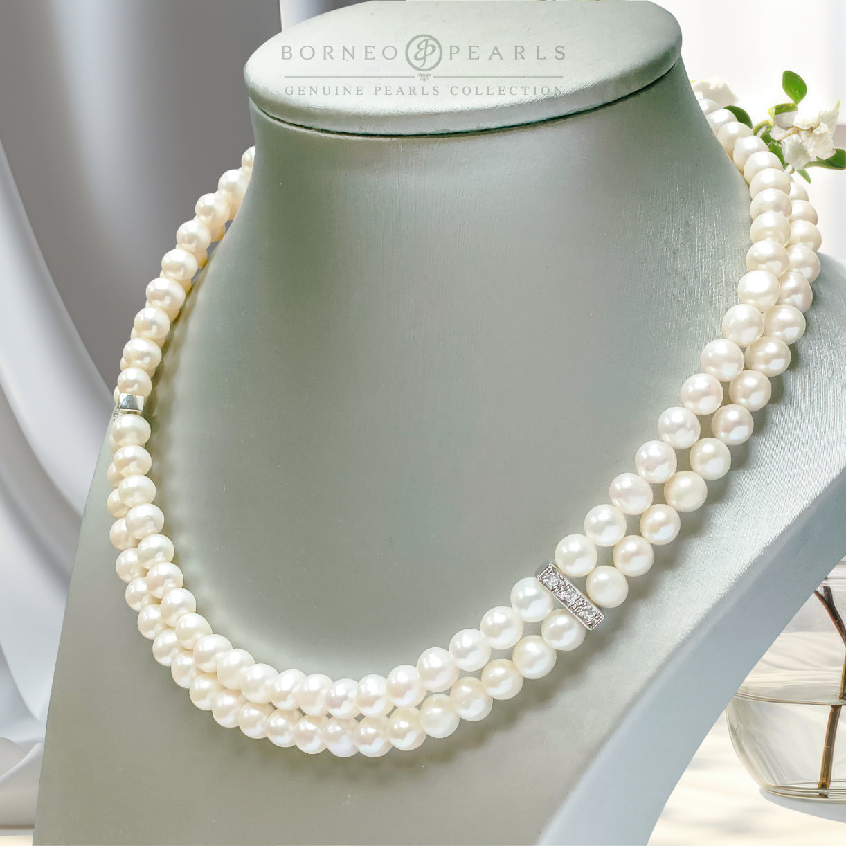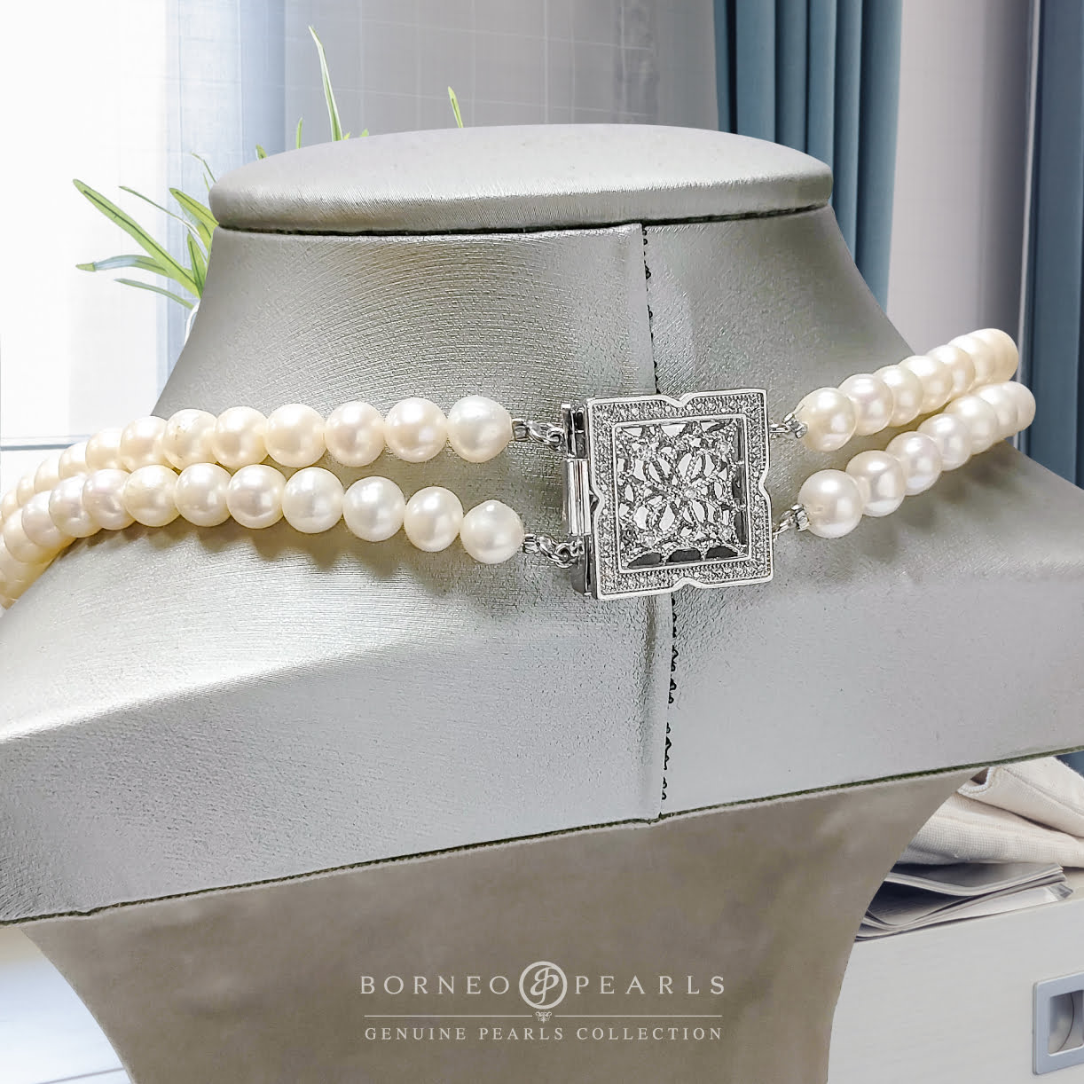 إن سحر العالم القديم المتمثل في عقد اللؤلؤ ذو الطبقة المزدوجة هو هدية لا تقاوم. تتميز هذه القلادات الرائعة المصنوعة من لؤلؤ المياه العذبة ذات الجديلة المزدوجة مقاس 6-7 مم بأرقى لآلئ المياه العذبة المتوفرة اليوم. لديهم بريق استثنائي وأسطح خالية من العيوب.