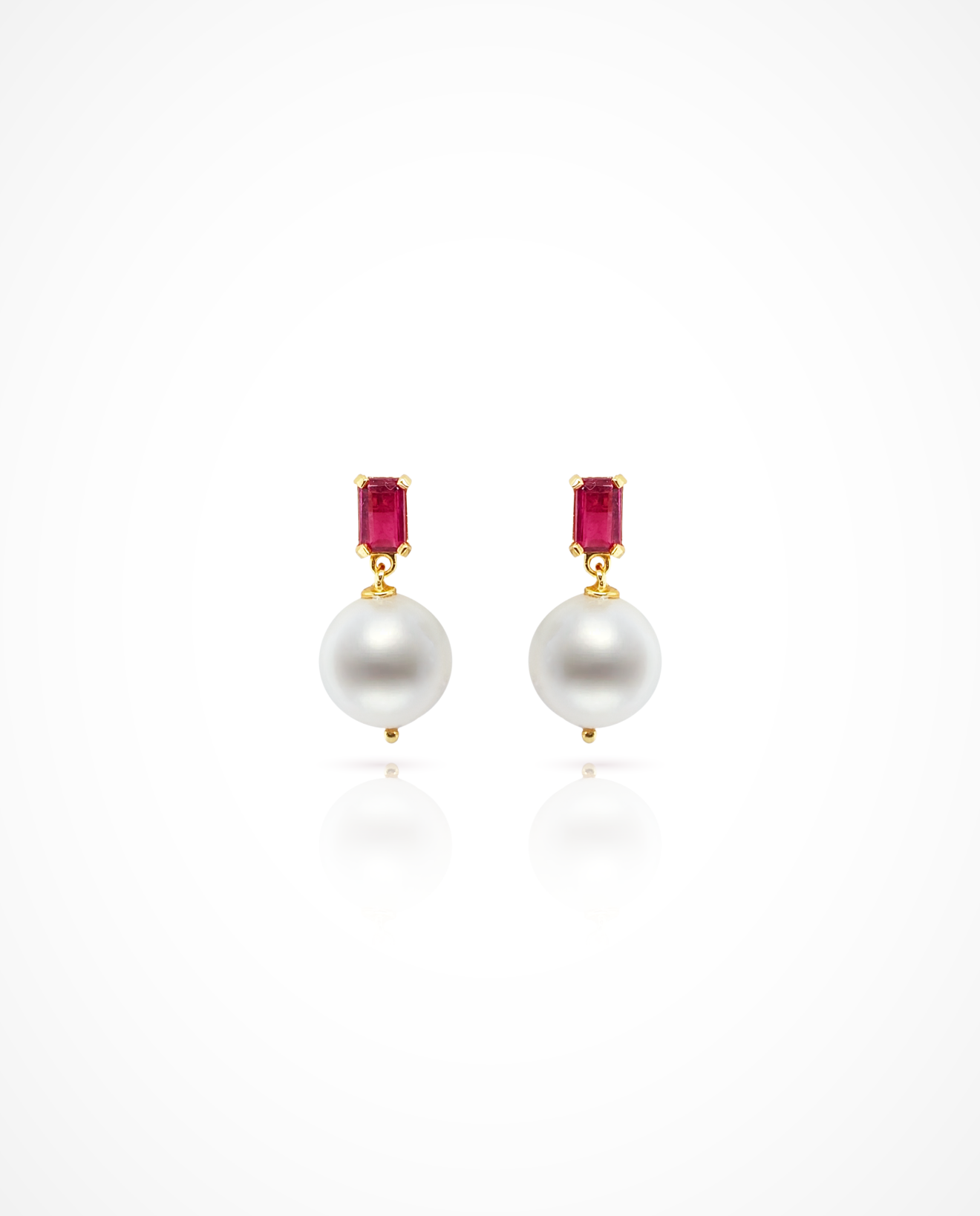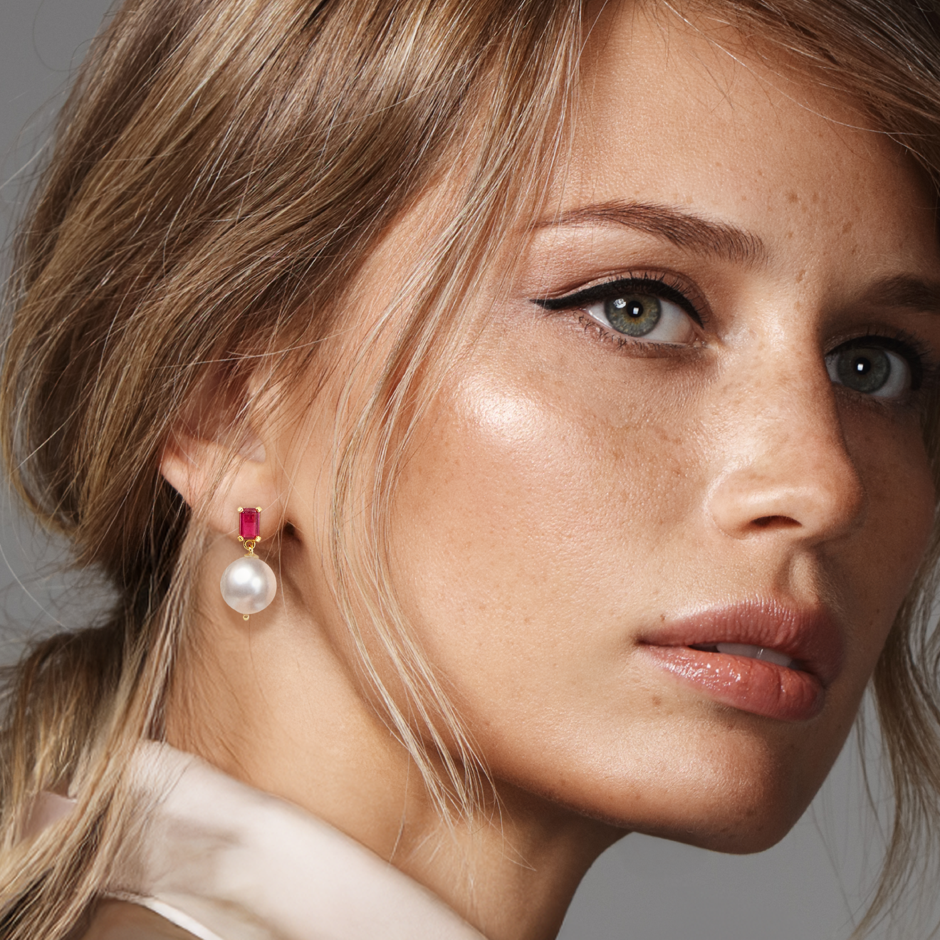 The soft glow of off-round pearls 11–13mm with the vivid allure of ruby stones, all set in polished 925 silver. Designed for those who appreciate jewelry with soul, each imperfect pearl tells a story ,unique, radiant, and beautifully yours.
