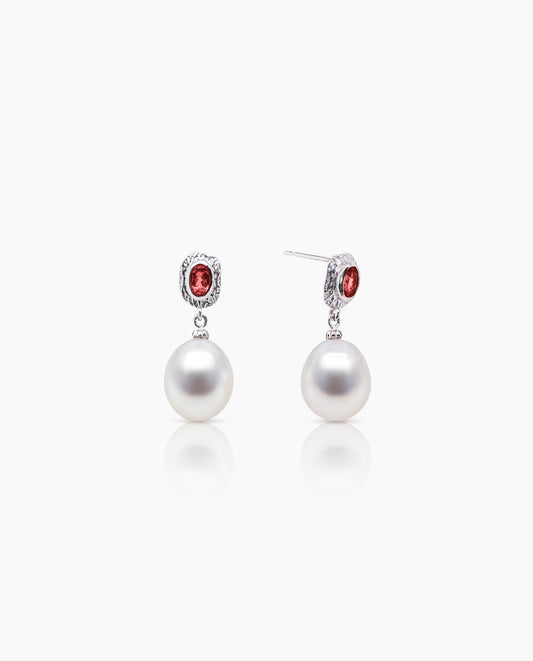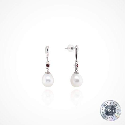 Pearl Drop & Garnet Earrings in 925 Silver