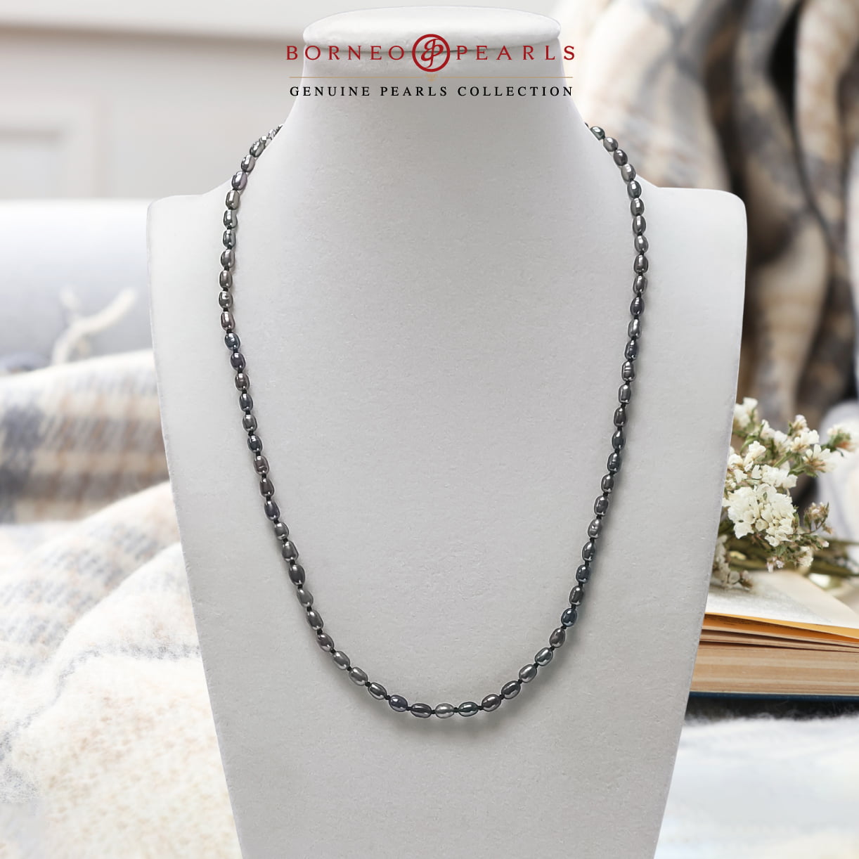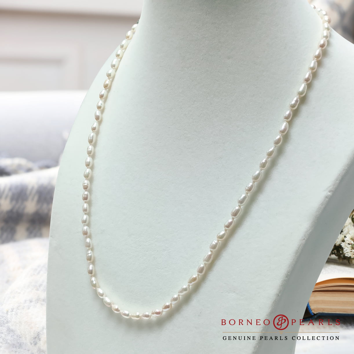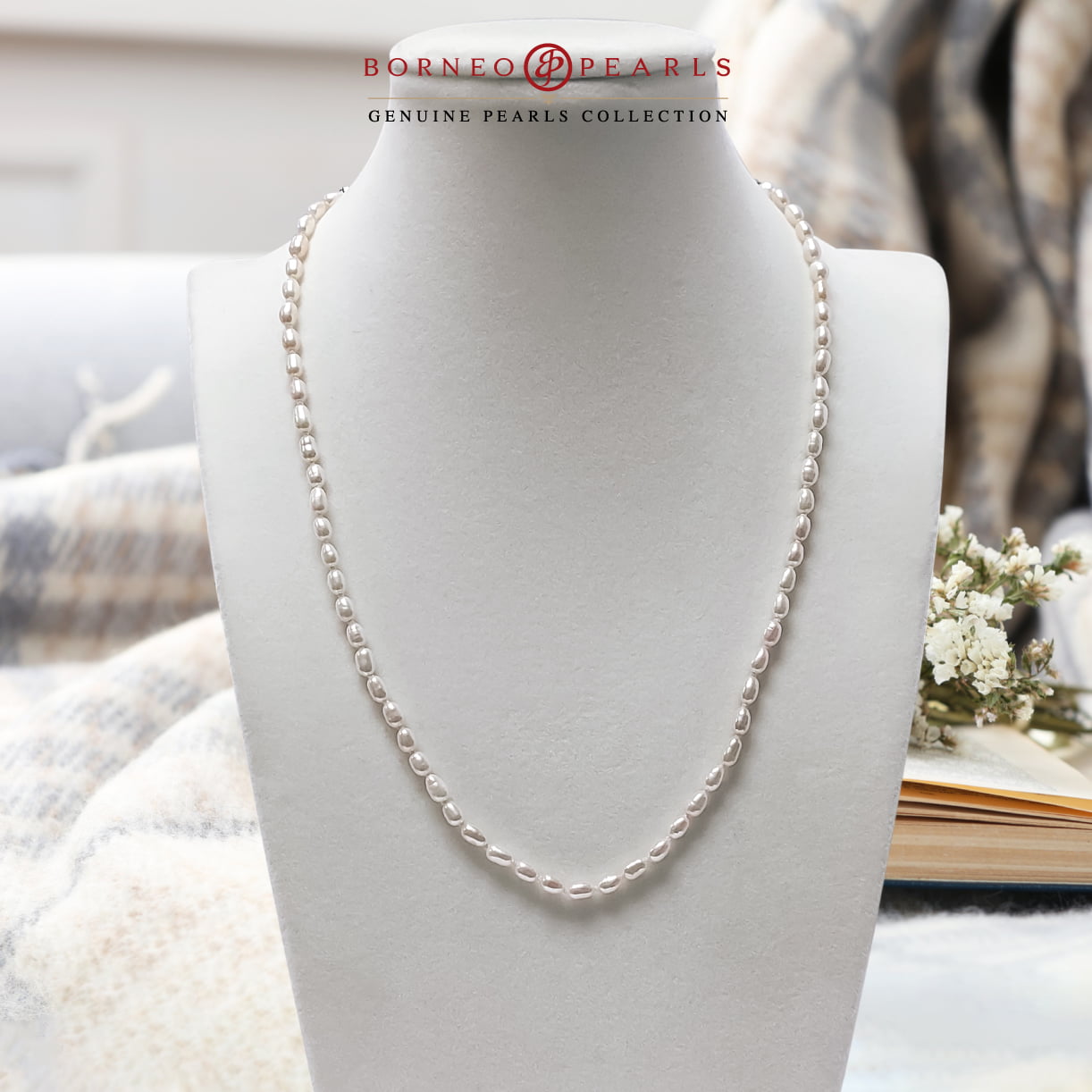The strand of pearls is finished with a gorgeous rhodium-plated clasp.