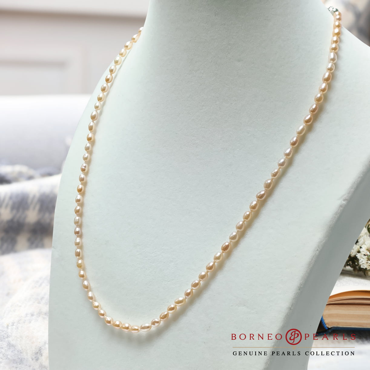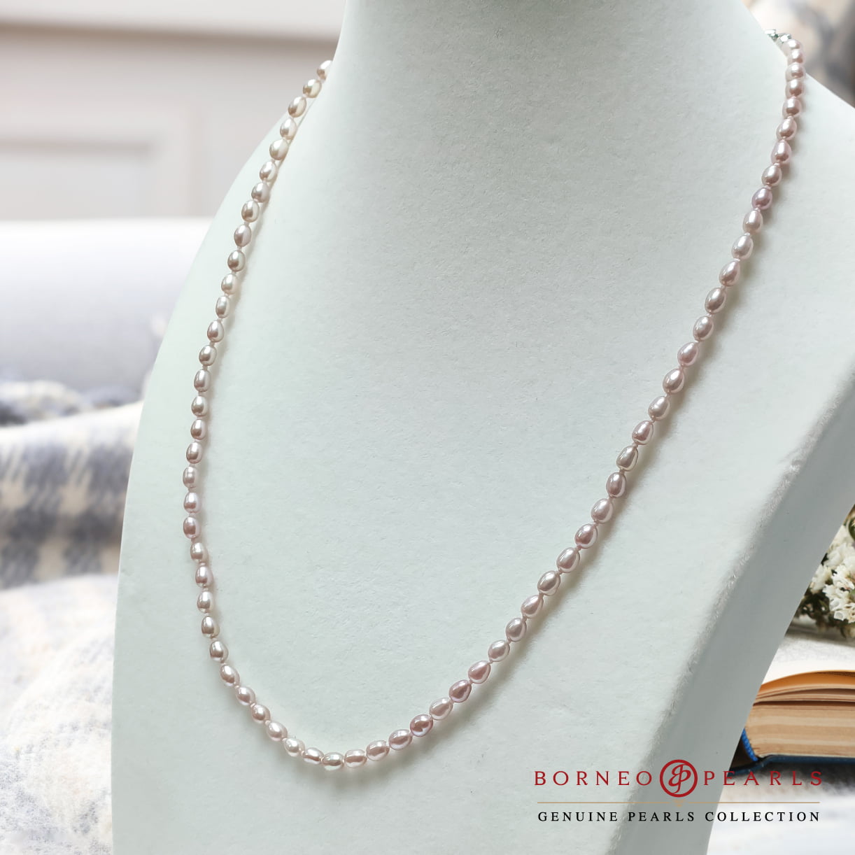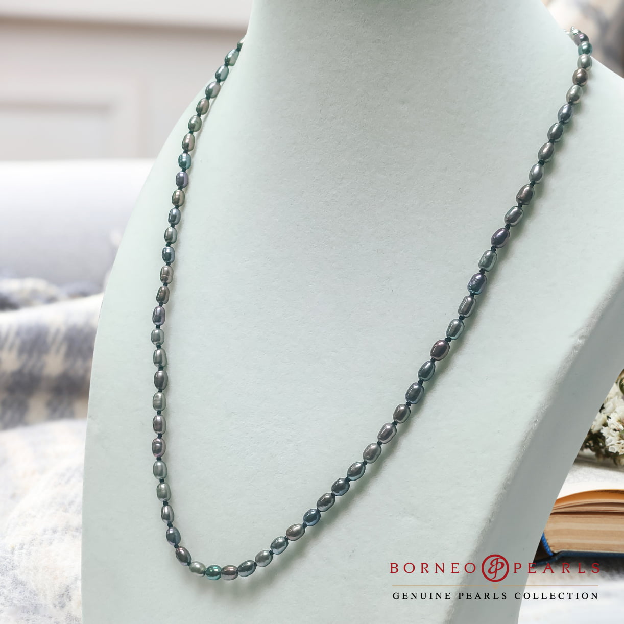 The strand of pearls is finished with a gorgeous rhodium-plated clasp.