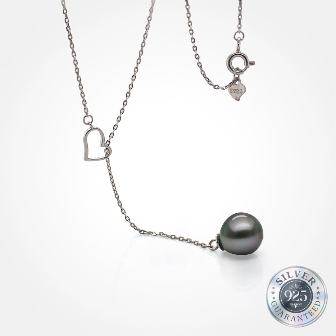Discover elegance and island charm with our Tahitian pendant featuring a delicate heart charm, beautifully crafted to captivate and enchant. This exquisite piece is a celebration of Tahitian artistry, showcasing a genuine Tahitian pearl in a lustrous hue, suspended from a shimmering adjustable silver chain. Each pearl is a unique creation of nature, reflecting the deep, mysterious waters of Tahiti.
