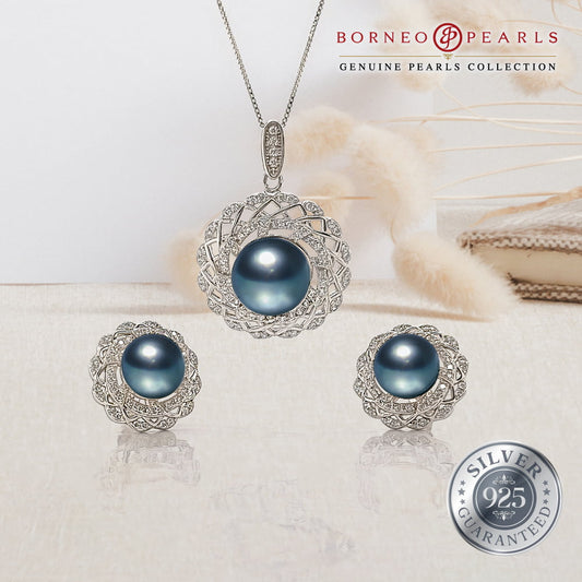 925 银珍珠耳环和吊坠套装 - SIMPLICITY