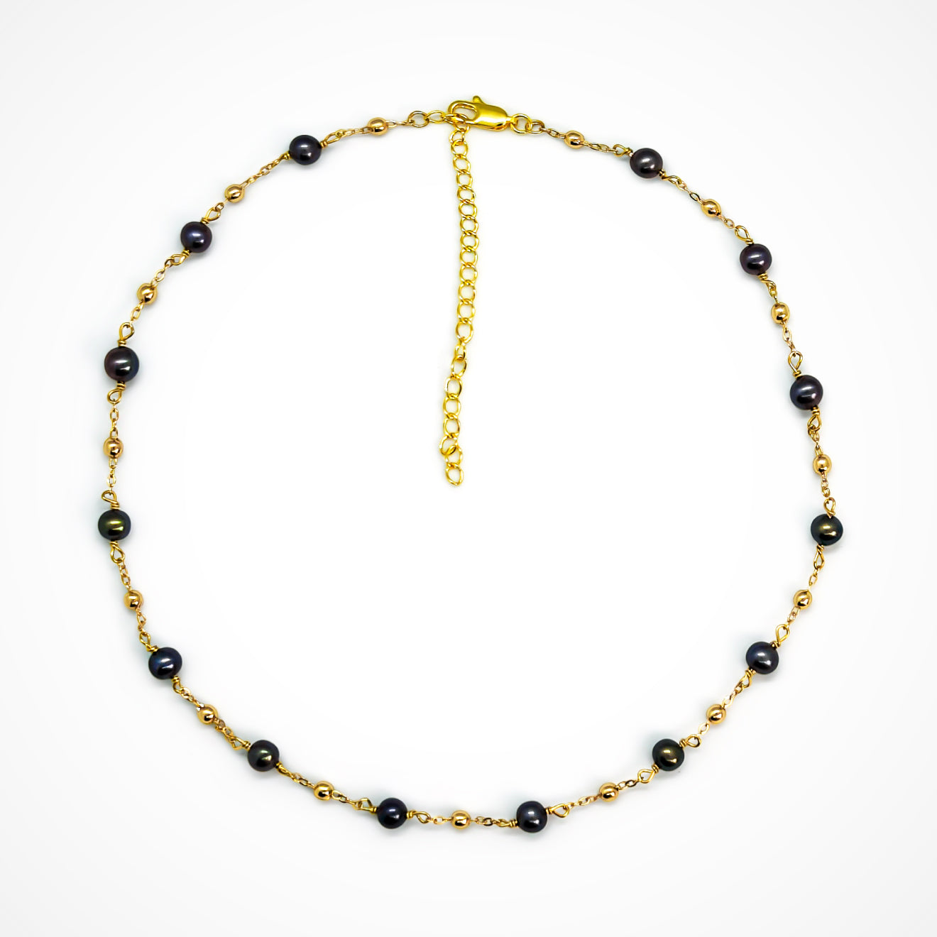 Elegant, mysterious, unforgettable — just like her. Introducing our latest addition: radiant 5–6mm black off-round pearls on a delicate gold chain.